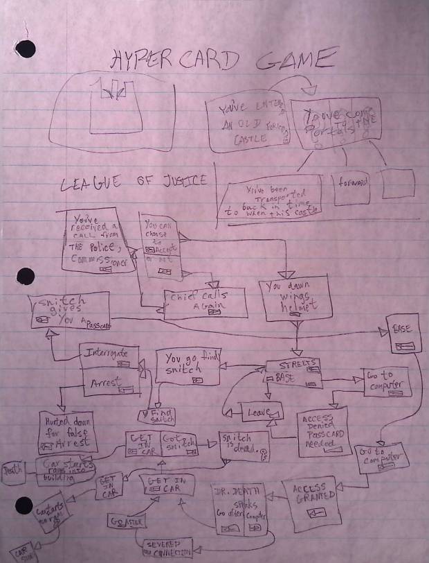 LEAGUE OF JUSTICE HYPERCARD GAME MAP / BALLPOINT PEN